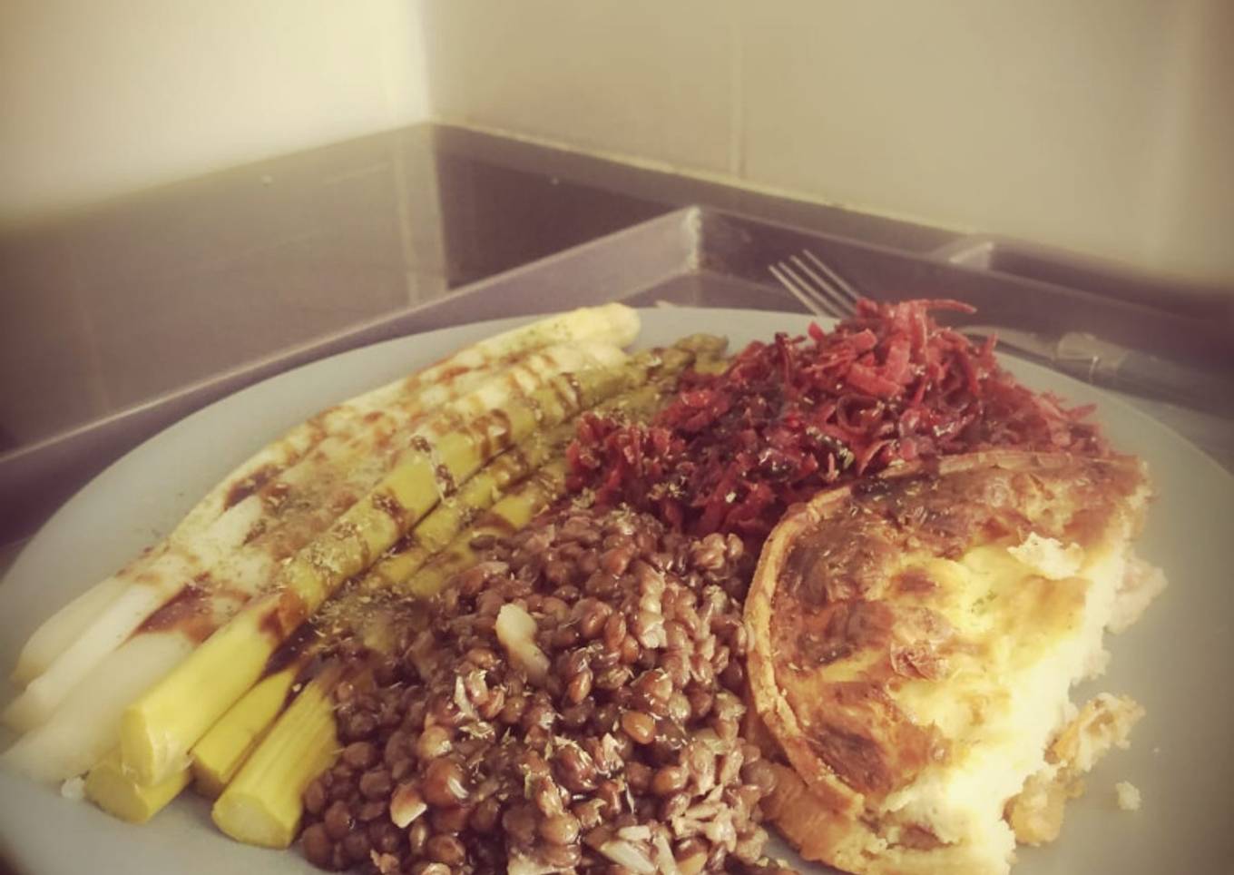 Asperges, betterave, lentilles, quiche